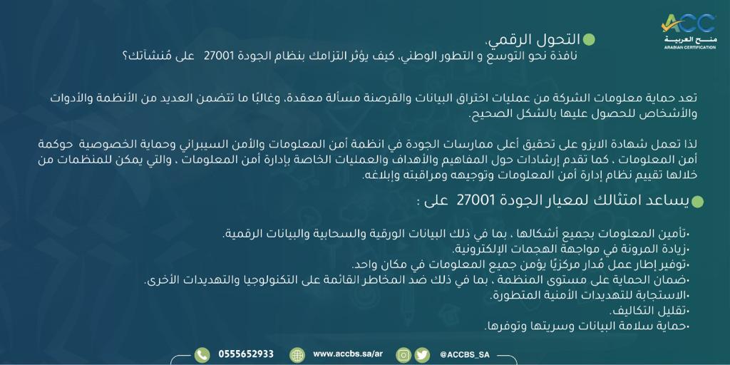مزايا أنظمة إدارة الأمن لسلسلة التوريد ISO 28000 • اكتساب ميزة تنافسية والحصول على أعمال جديدة • تسهيل التجارة عبر الحدود • اكتساب الفرص لتحسين الكفاءة التشغيلية. • طمأنة أصحاب المصلحة بالتزام مؤسستك بسلامة الأفراد وأمن السلع والخدمات • خفض التكاليف التشغيلية • امتثالك لأفضل ممارسات الدولية في إدارة […]