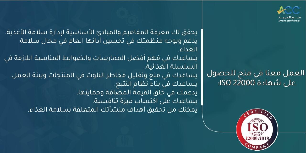 العمل معنا في منح للحصول على شهادة ISO 22000: يحقق لك معرفة المفاهيم والمبادئ الأساسية لإدارة سلامة الأغذية. يدعم ويوجه منظمتك في تحسين أدائها العام في مجال سلامة الغذاء. يساعدك في فهم أفضل الممارسات والضوابط المناسبة اللازمة في السلسلة الغذائية. يساعدك في منع وتقليل مخاطر التلوث في المنتجات وبيئة العمل. يساعدك في بناء نظام التتبع. […]